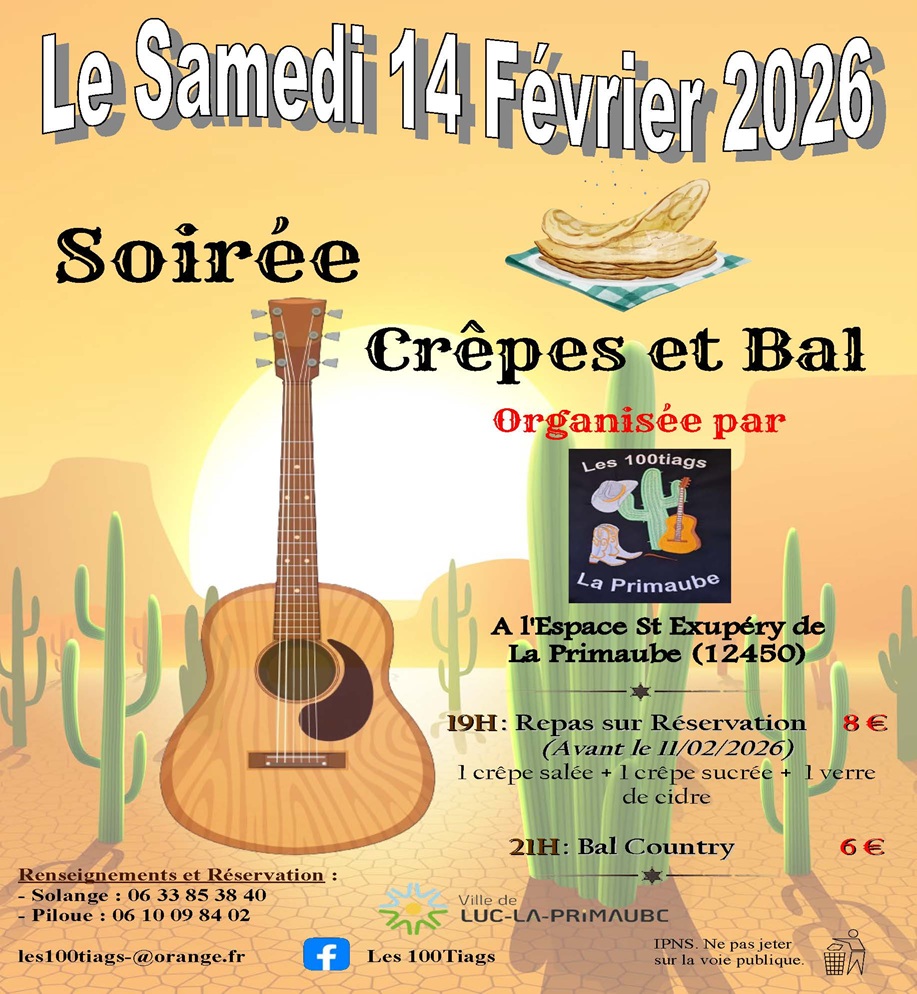Soirée Crêpes et Bal organisée par Les 100 tiags / A partir de 19h30.