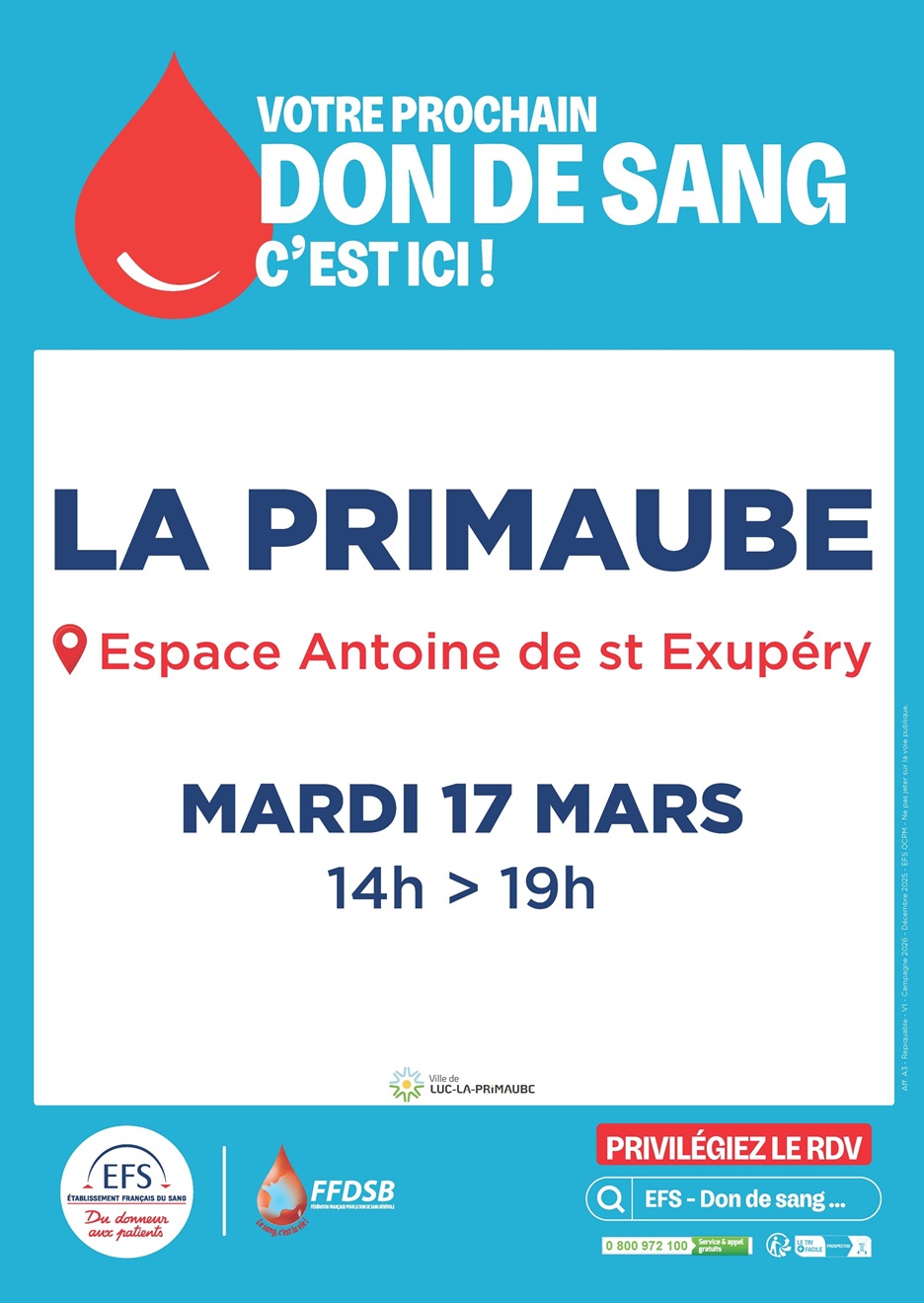 Don du Sang – Espace St Exupéry du 17/03/2026 au 17/02/2026